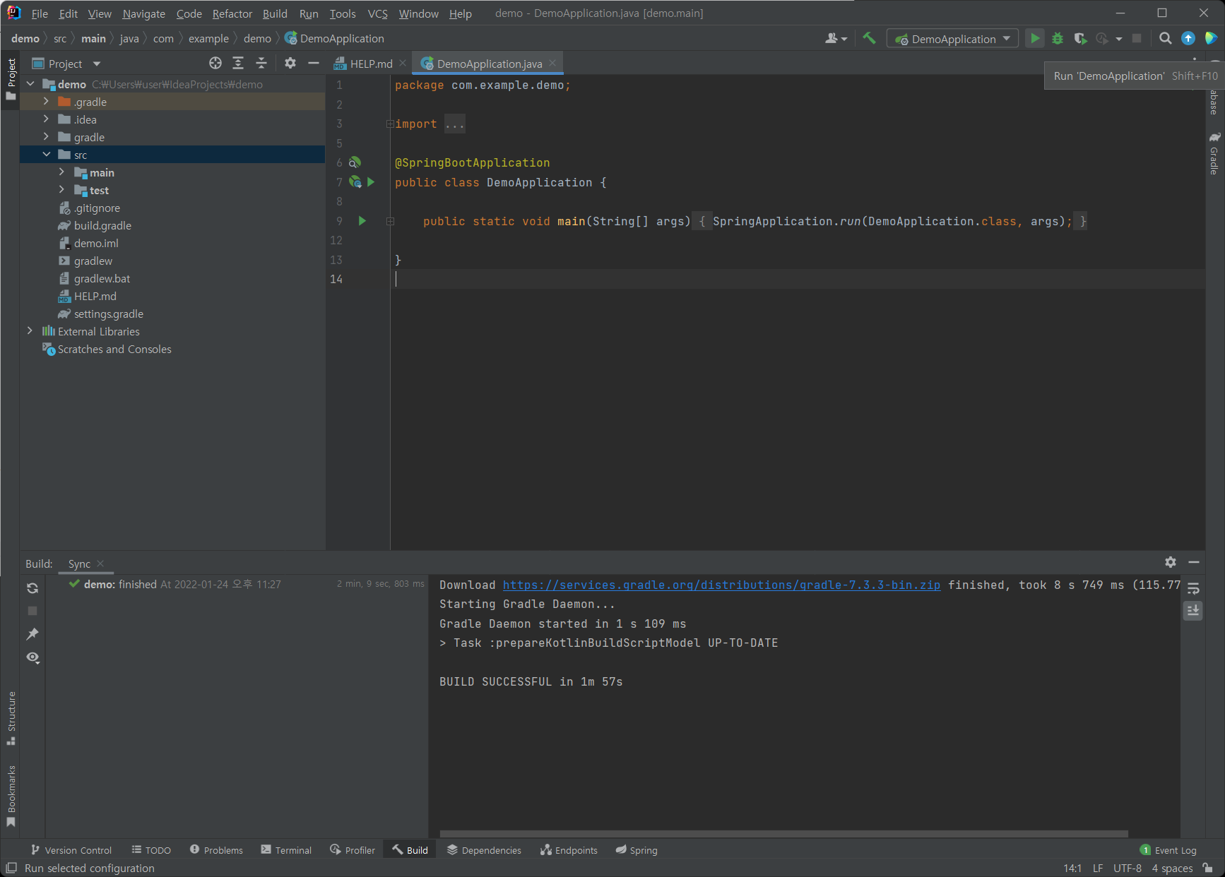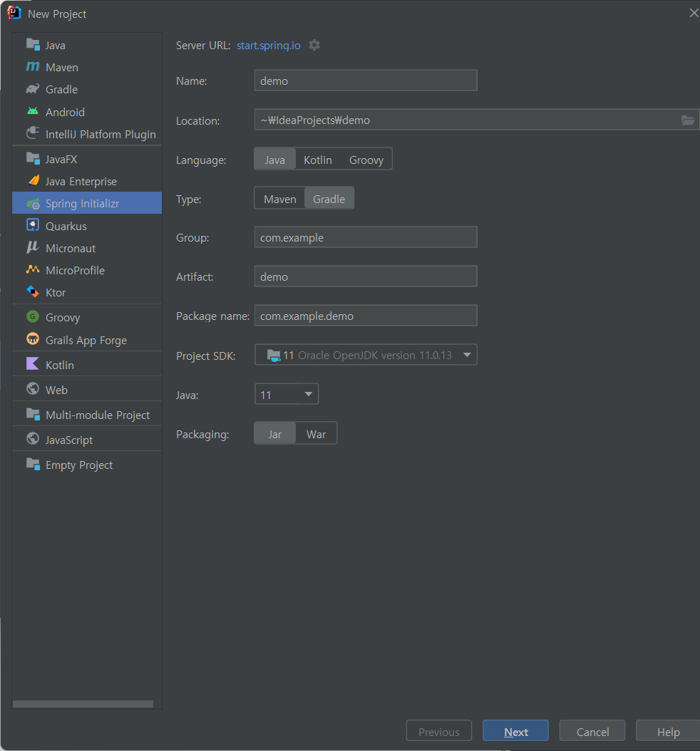 첫 화면에서 자동으로 Gradle이 다운로드된다
