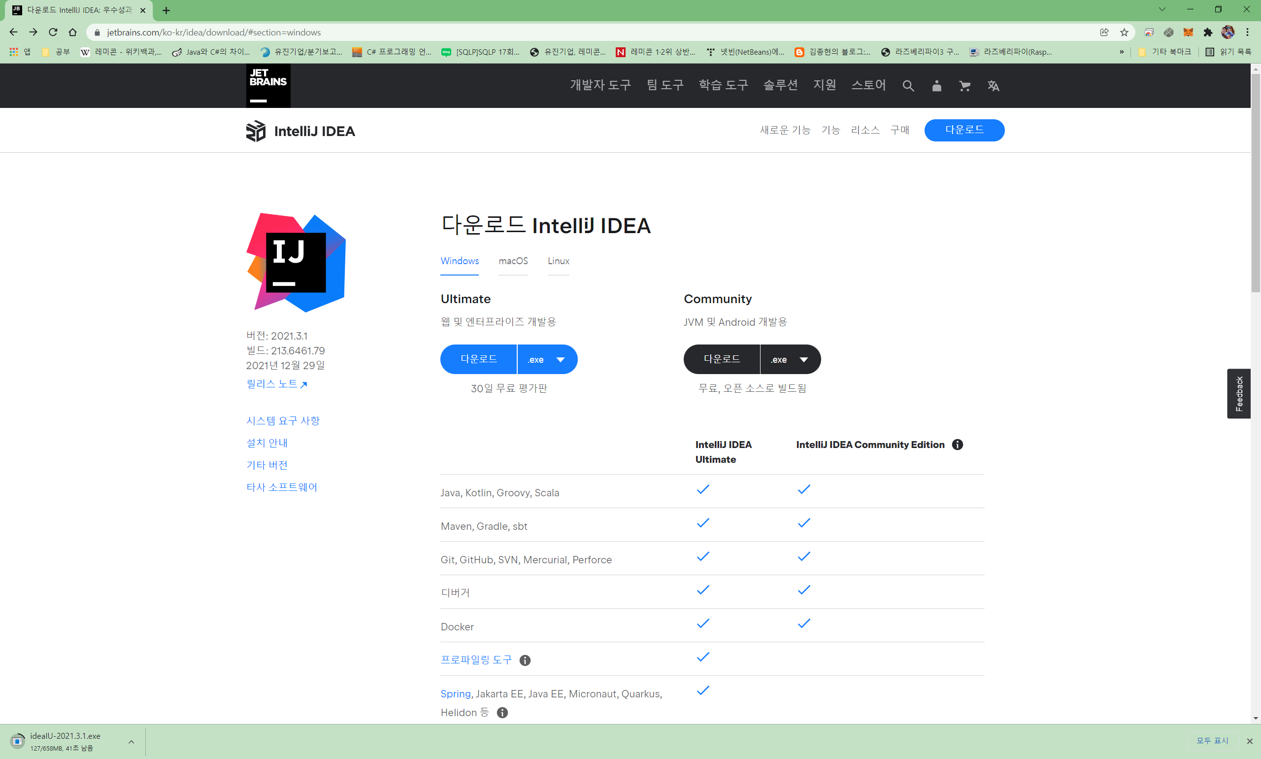 https://www.jetbrains.com/ko-kr/idea/download/#section=windows
