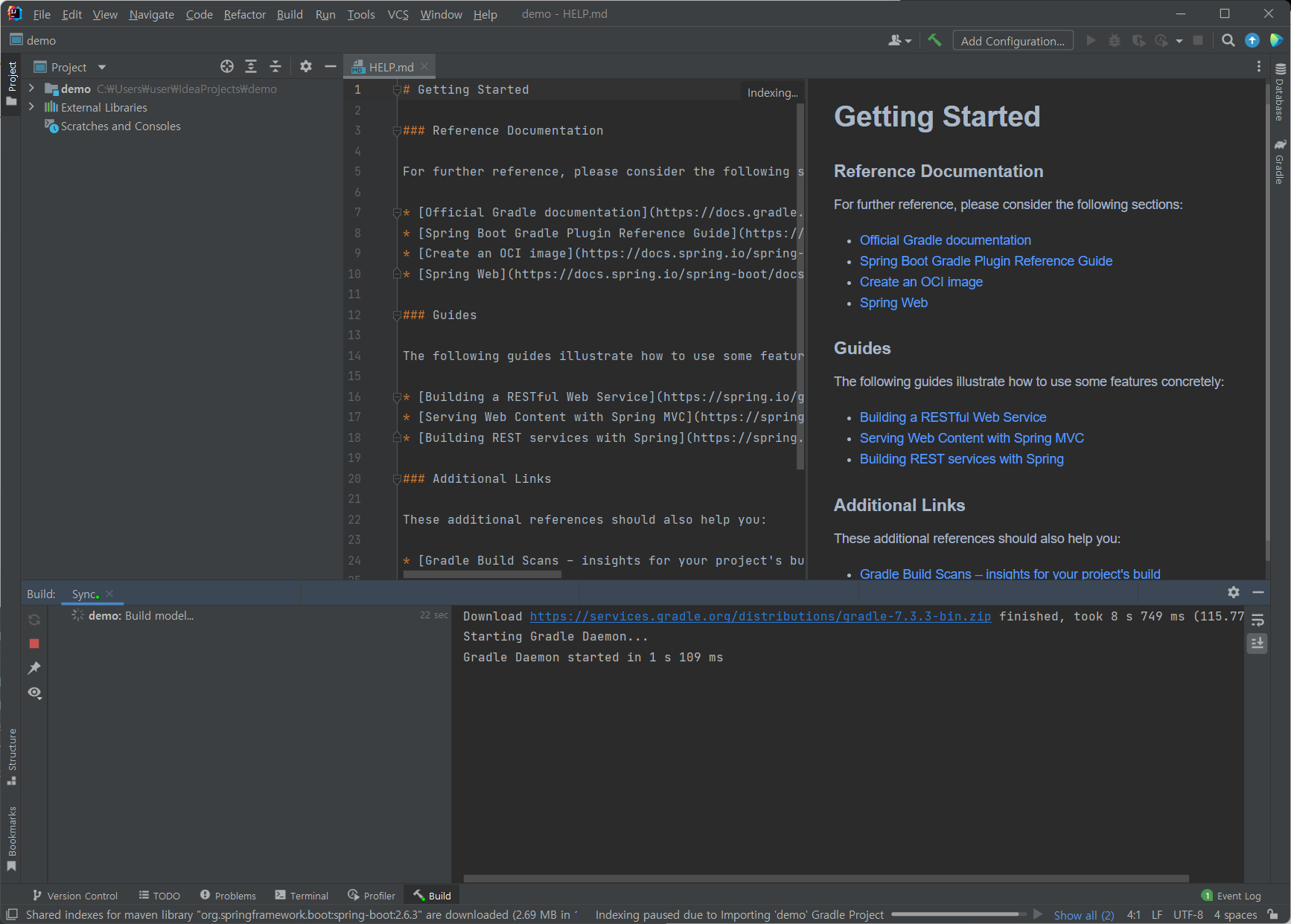 첫 화면에서 자동으로 Gradle이 다운로드된다