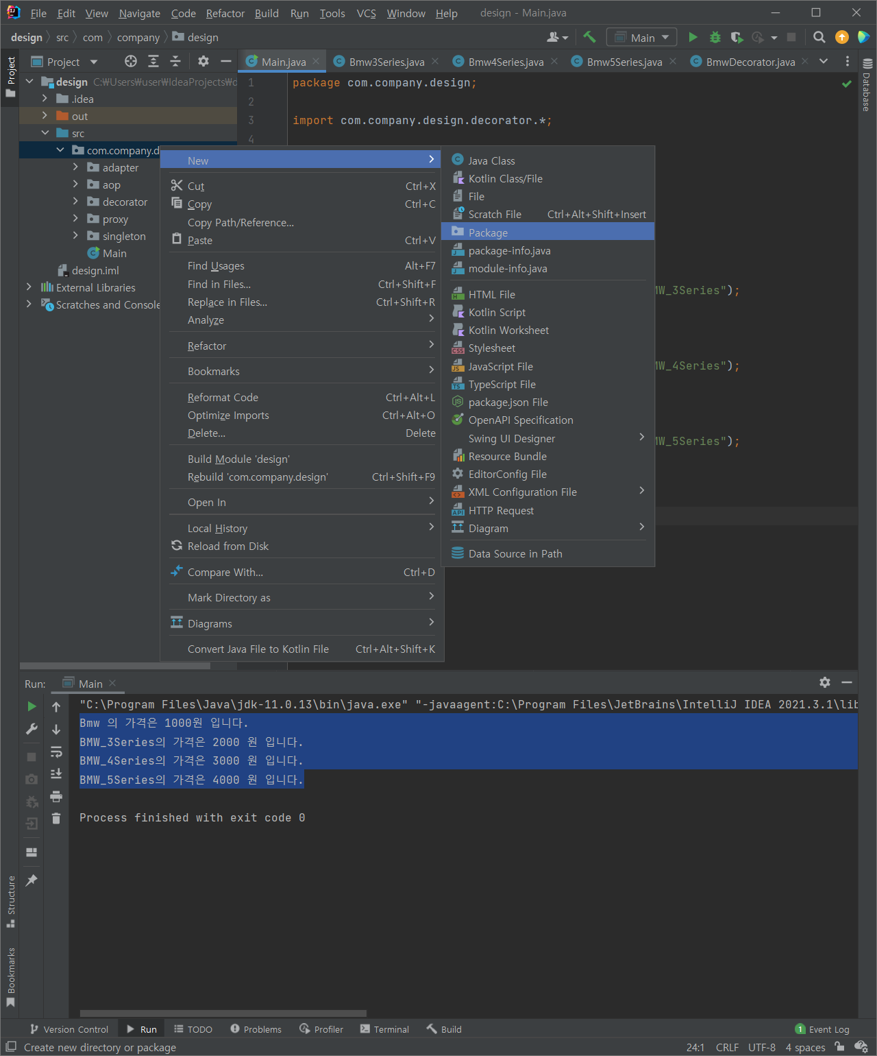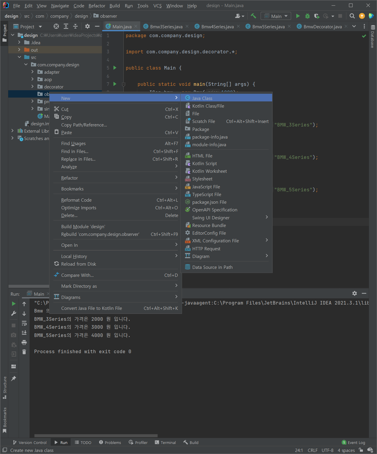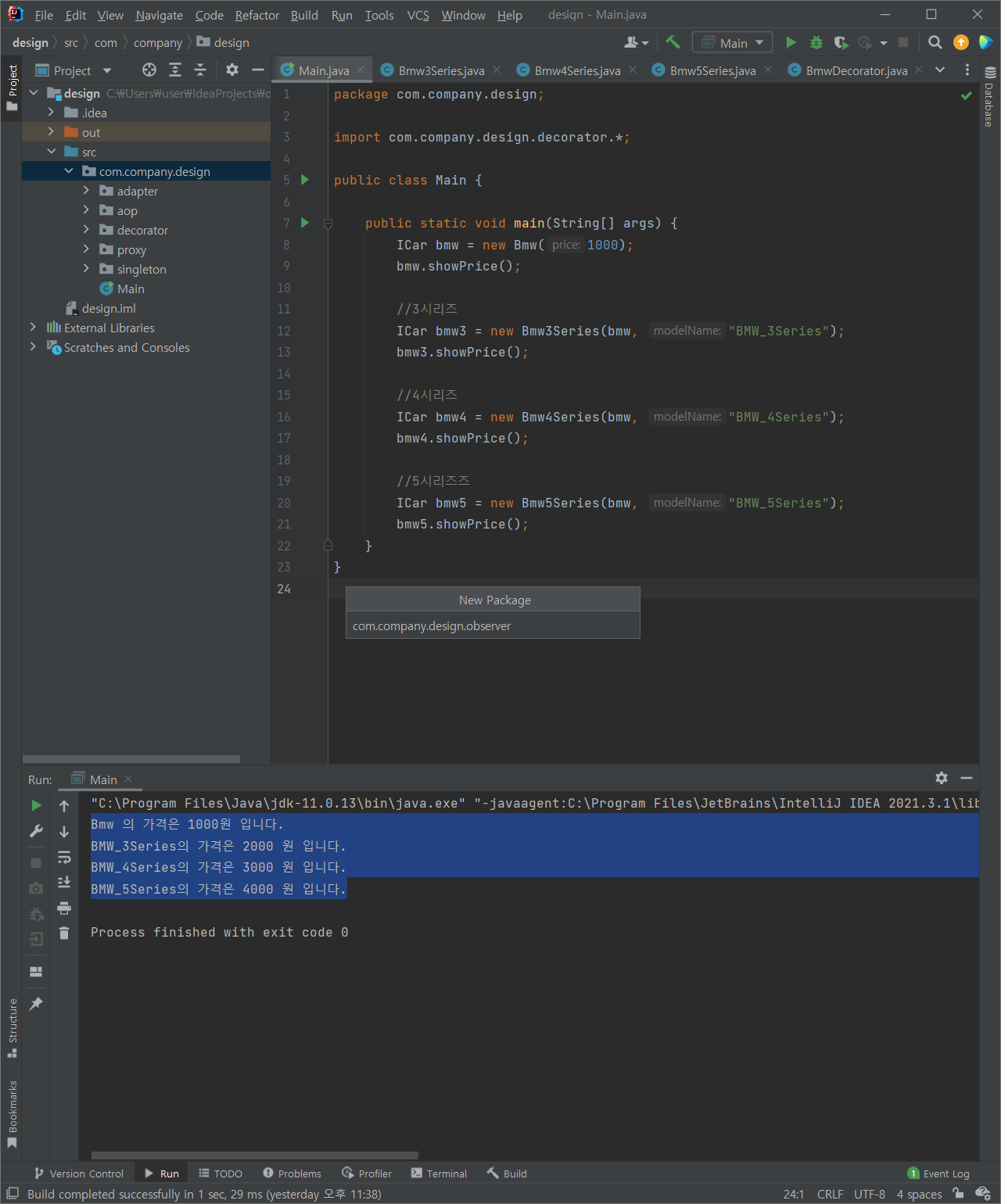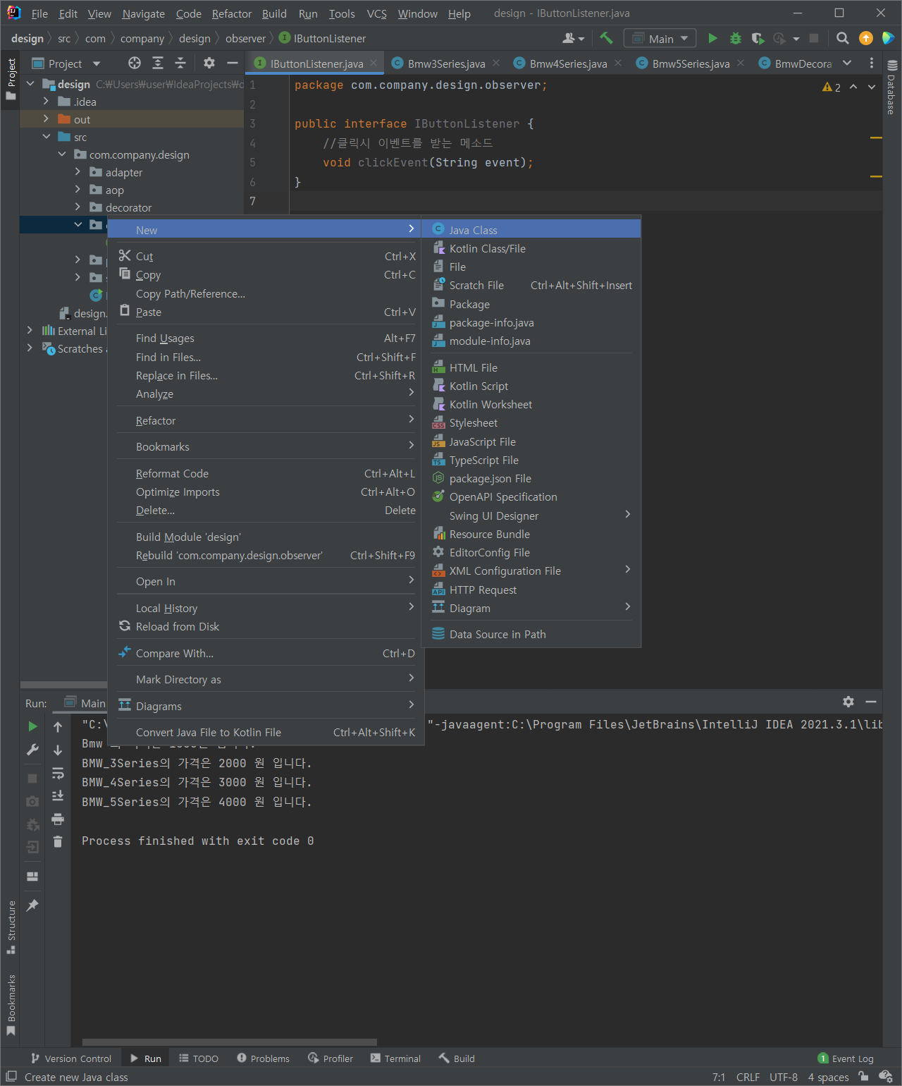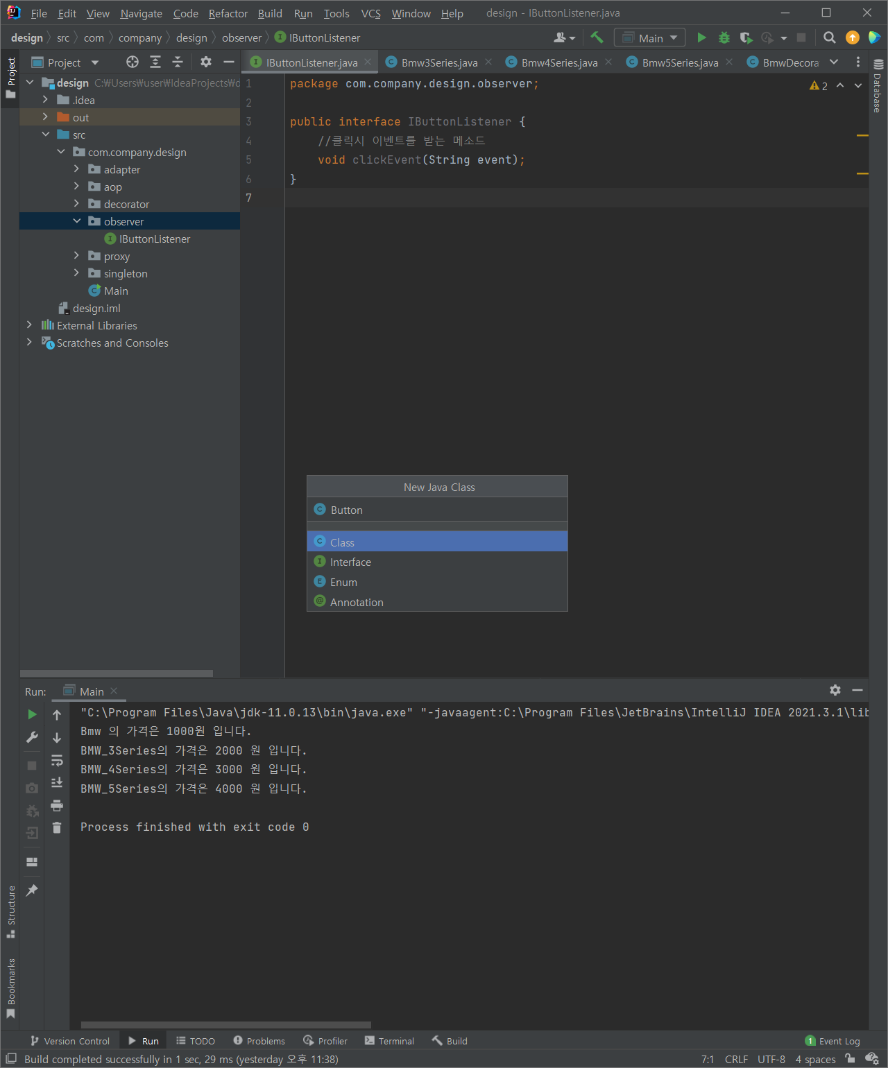 (1) com.company.design 패키지에 observer 패키지 추가 & IButtonListener 인터페이스 추가
