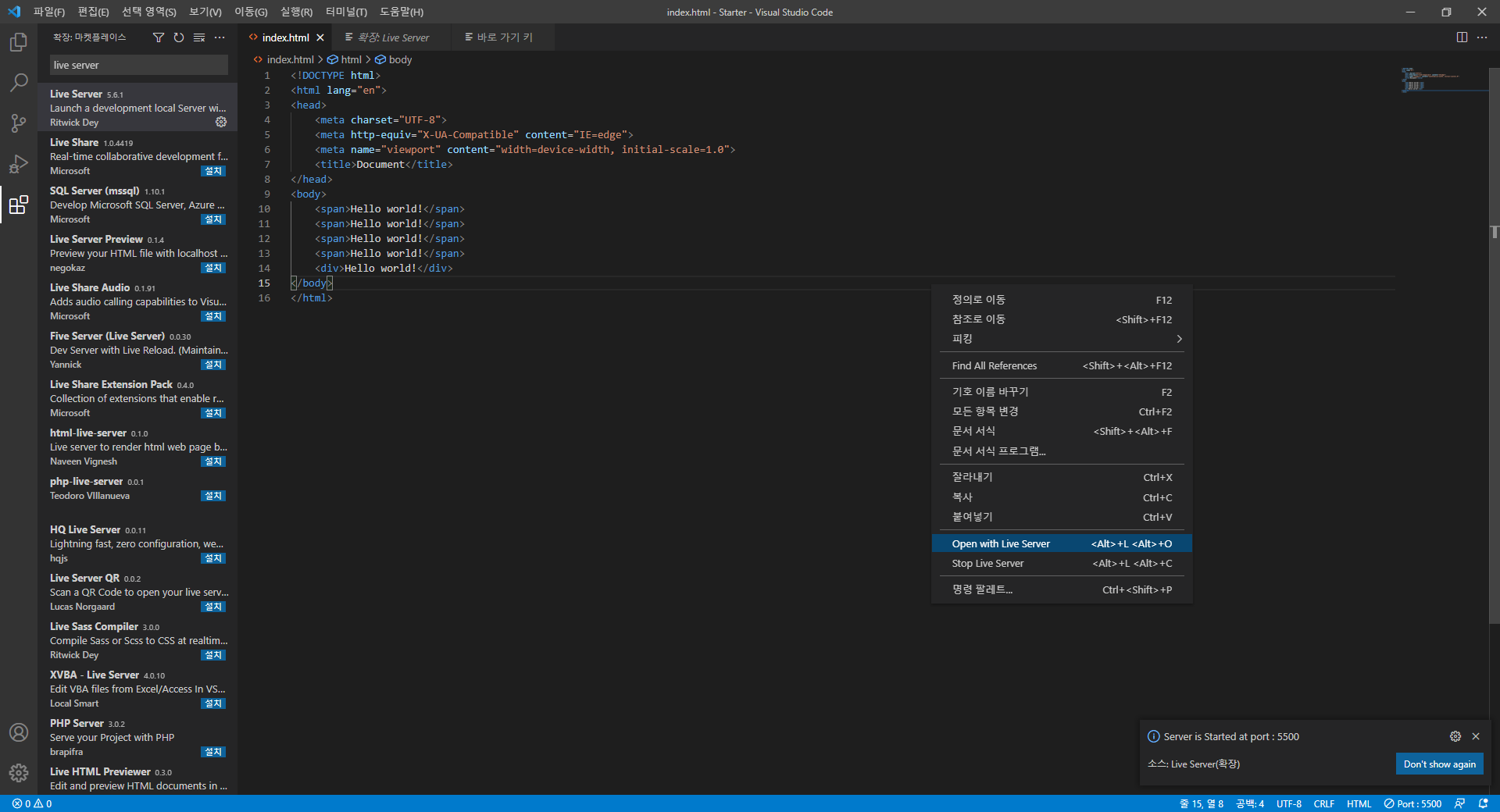 VS Code에서 브라우저에 출력하기 Live Server
