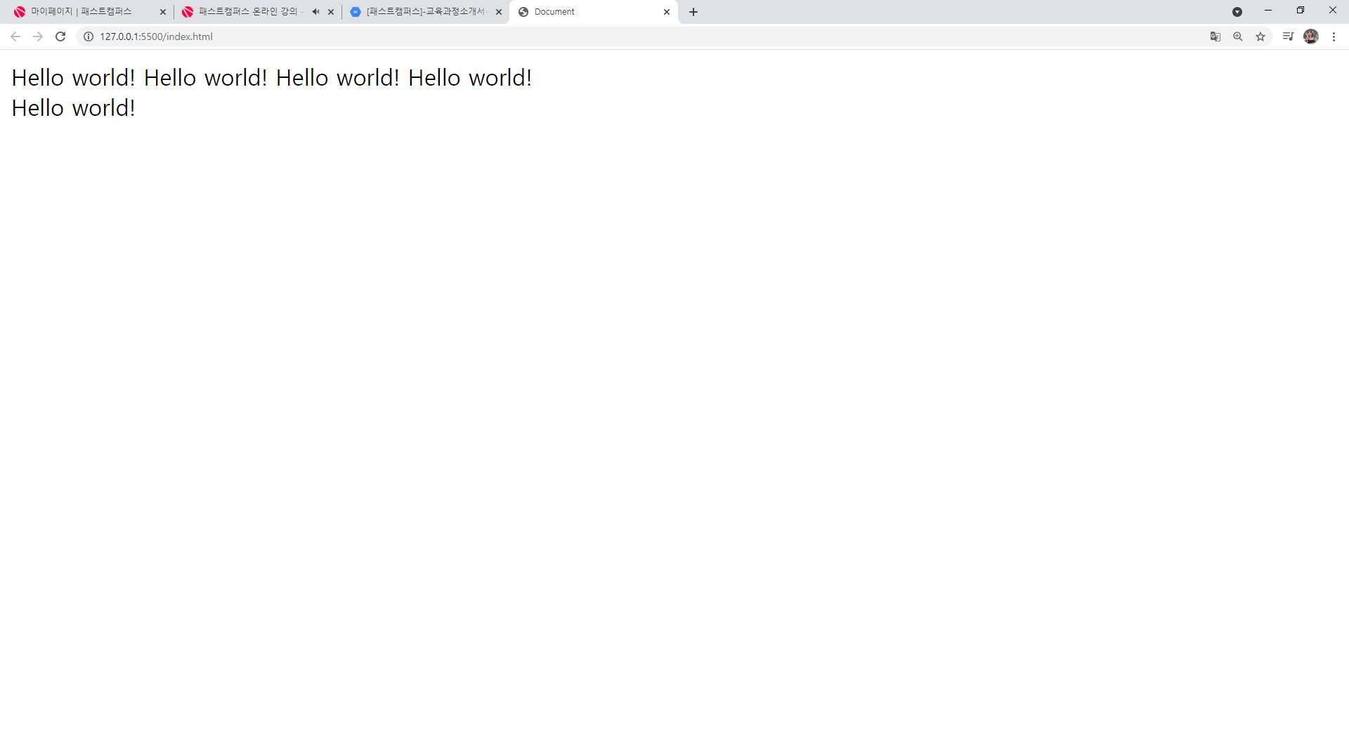 버튼 클릭 후 자동으로 브라우저가 실행되며, <body> 태그 안에 작성한 내용들이 화면에 보이게 된다.