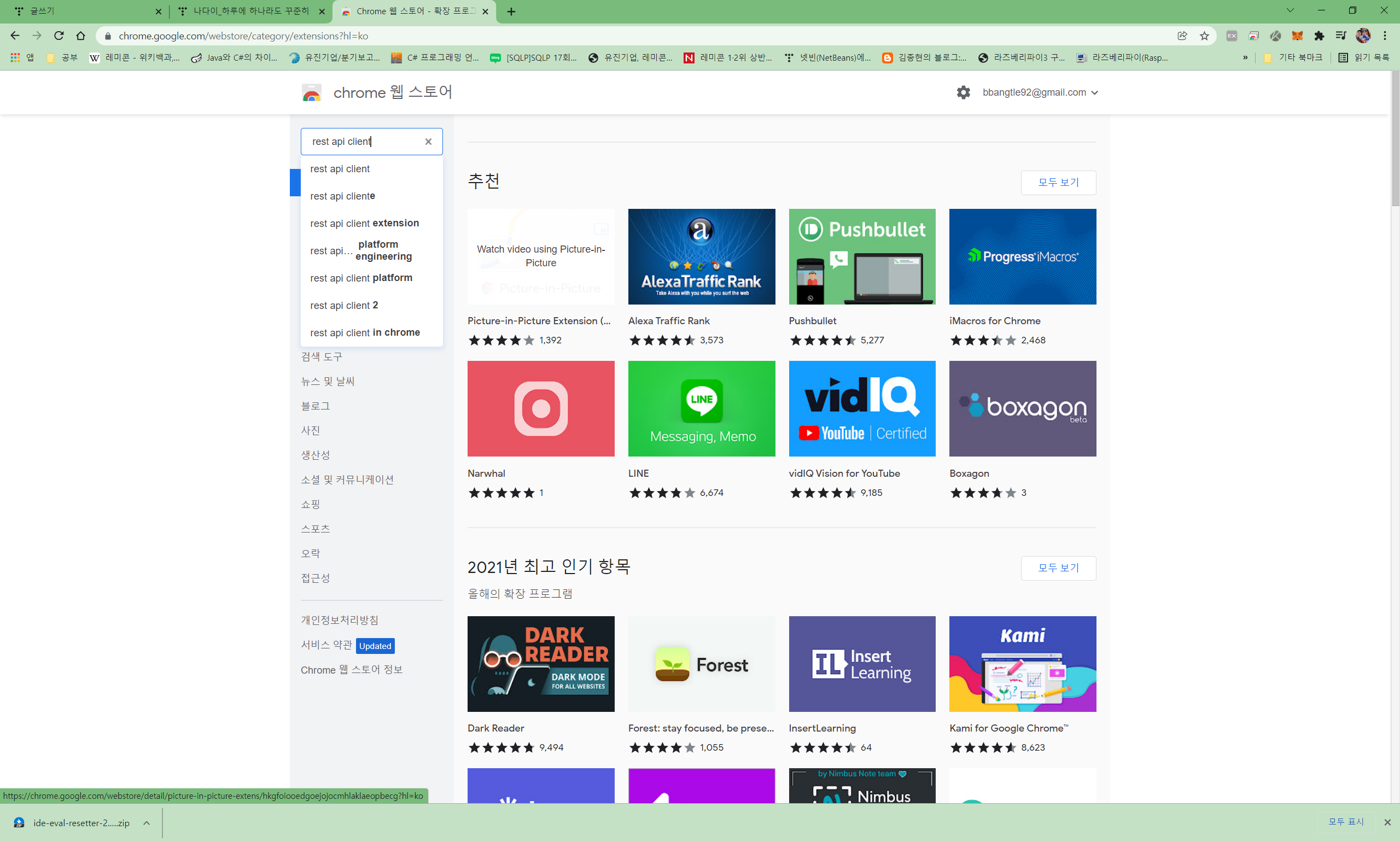(2) rest api client 검색 --> 확장프로그램 더 보기 클릭