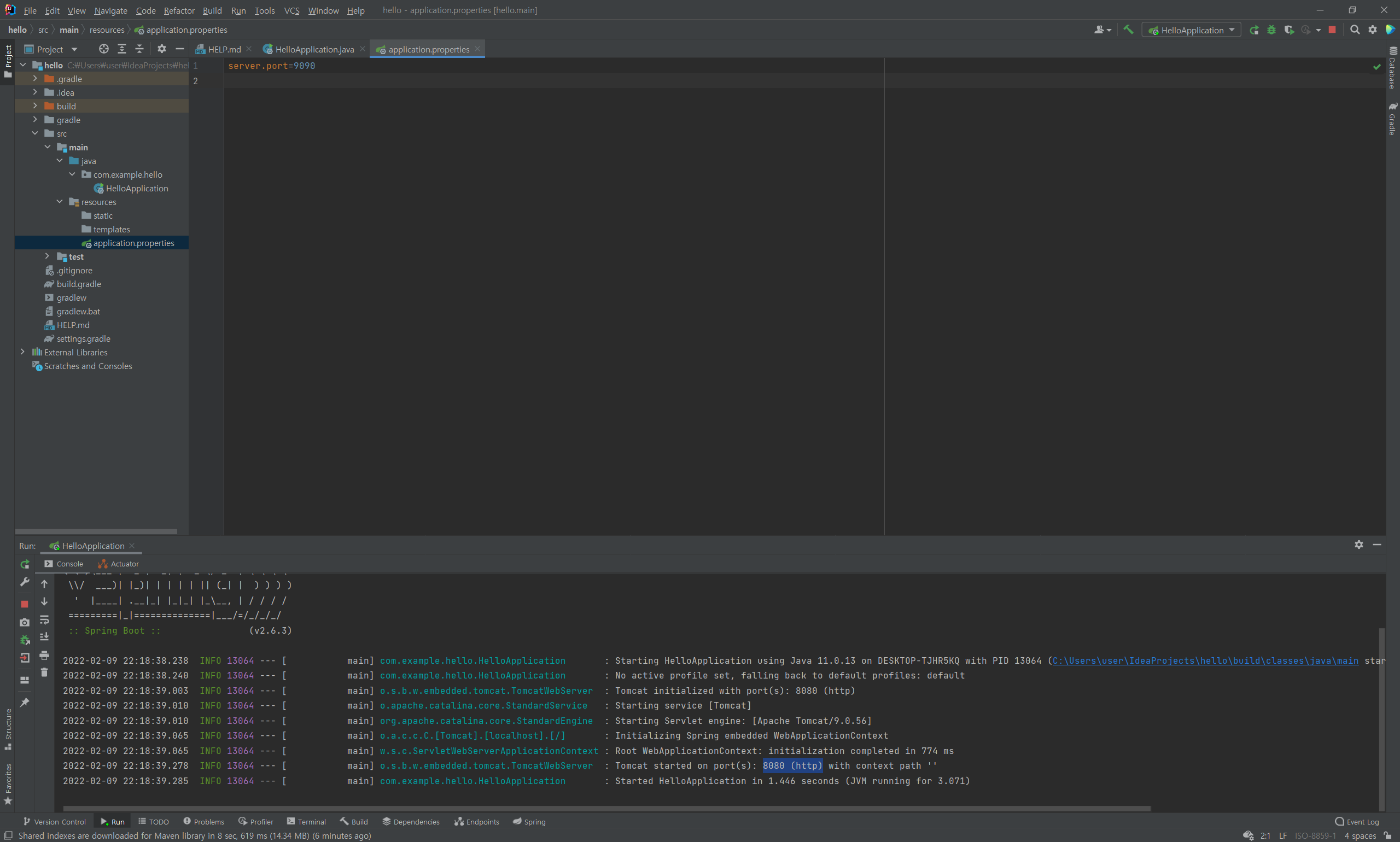 hello > src > main > resources > application.properties 에서 server.port 를 변경해주면 된다