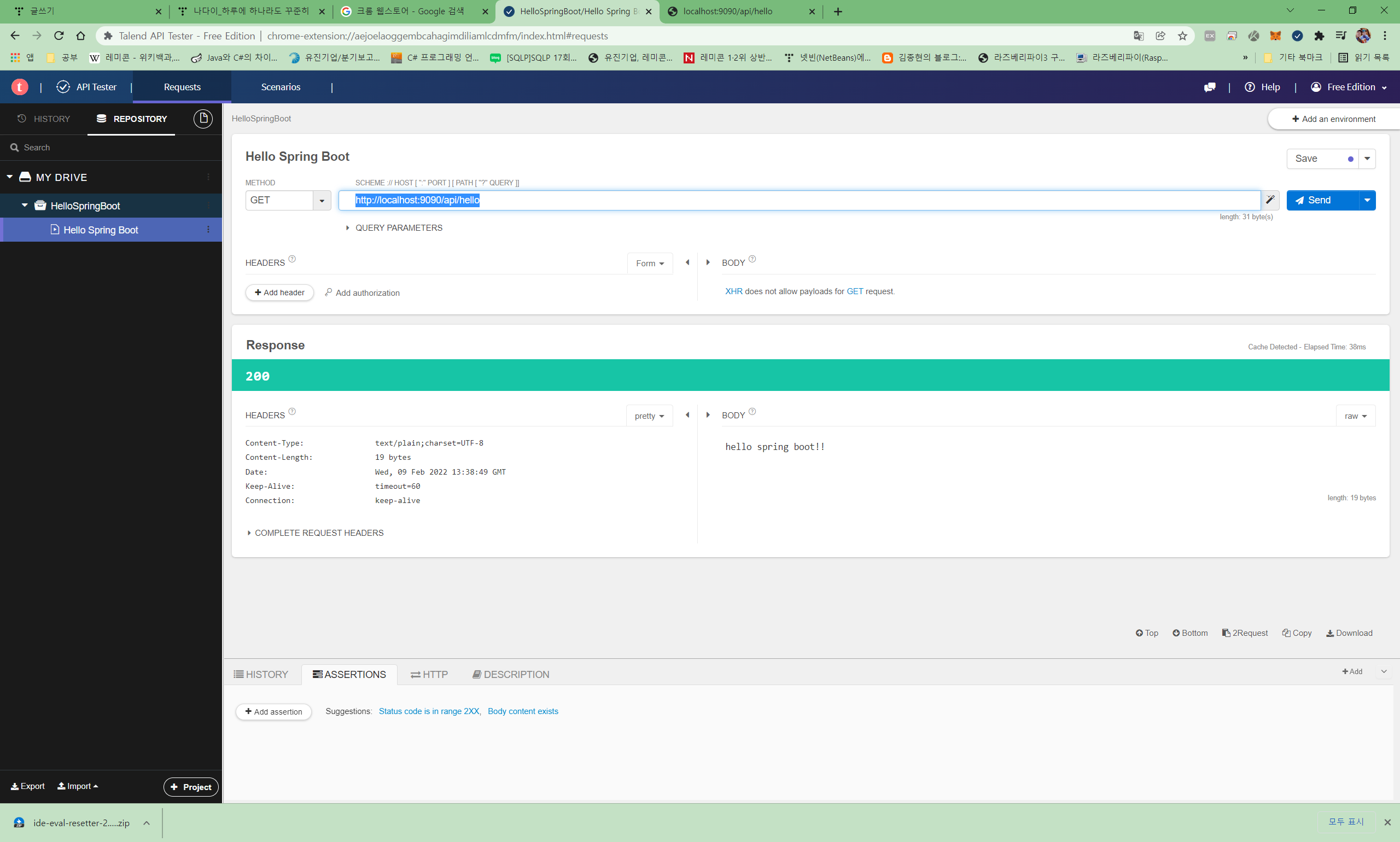 (7) 잘 실행이 되면 크롬 확장프로그램에 추가한 Talend API로 테스트한다