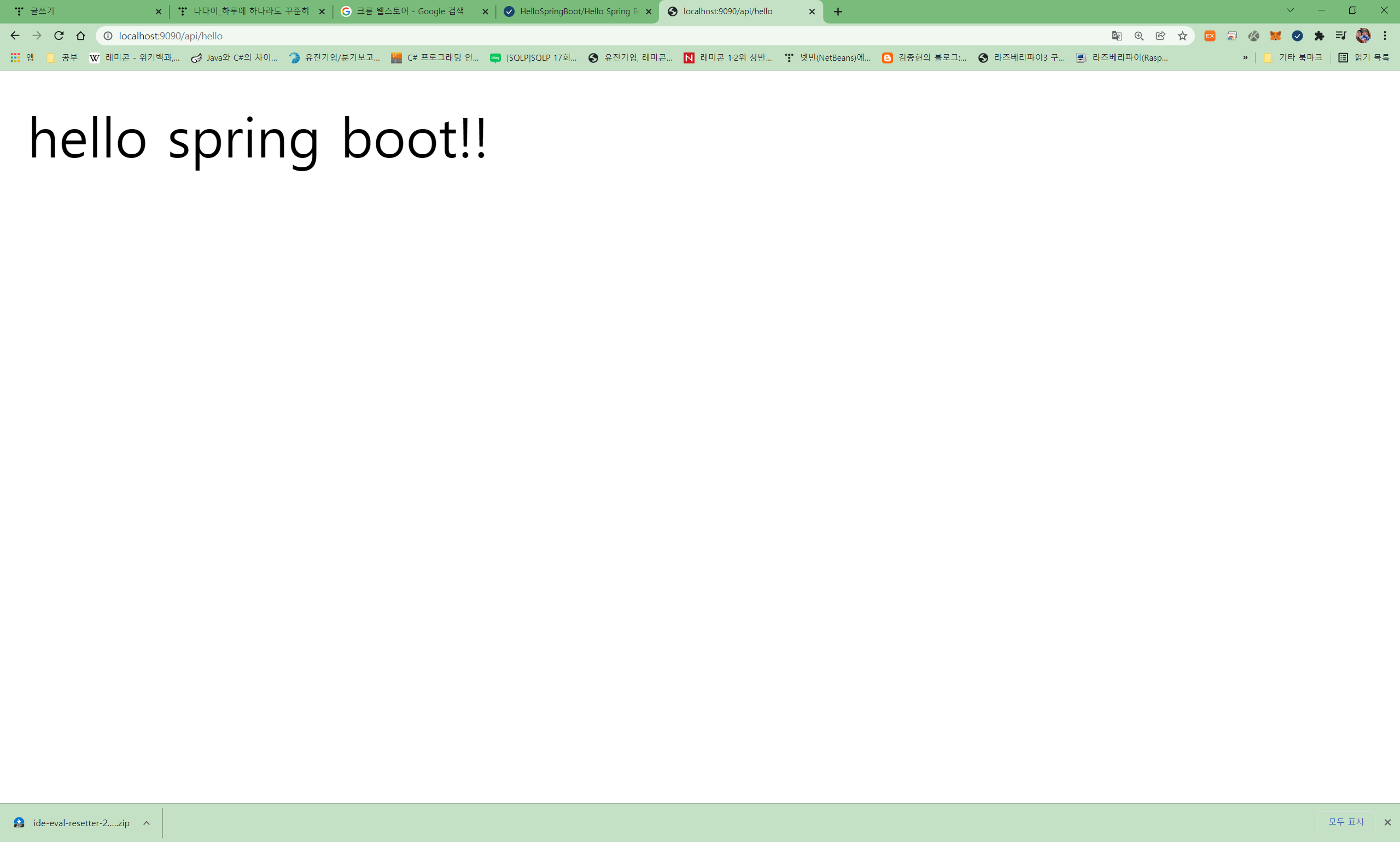 "hello spring boot!!" 가 리턴되는 것을 확인 할 수 있음