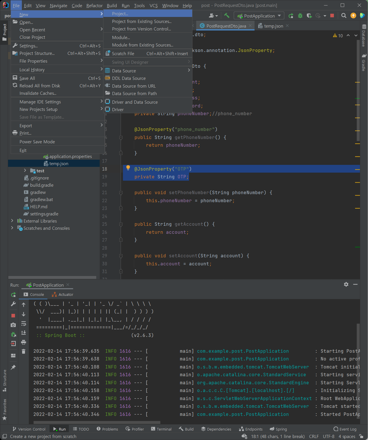 (7) PostRequestDto 에서 받은 requestDto를 그대로 return 해보자. 다음과 같이 소스 변경