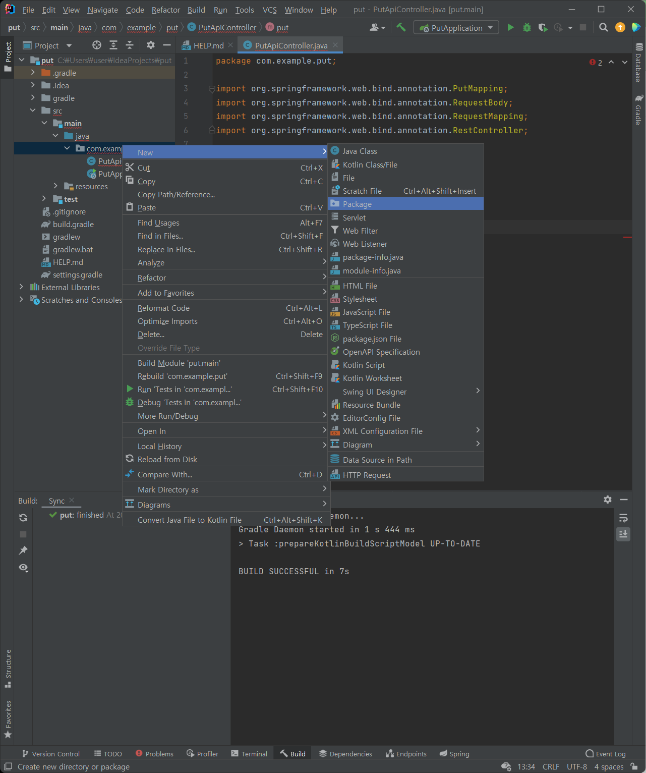 (2) src > main > java > com.example.put 경로에 PutApiController 클래스 추가