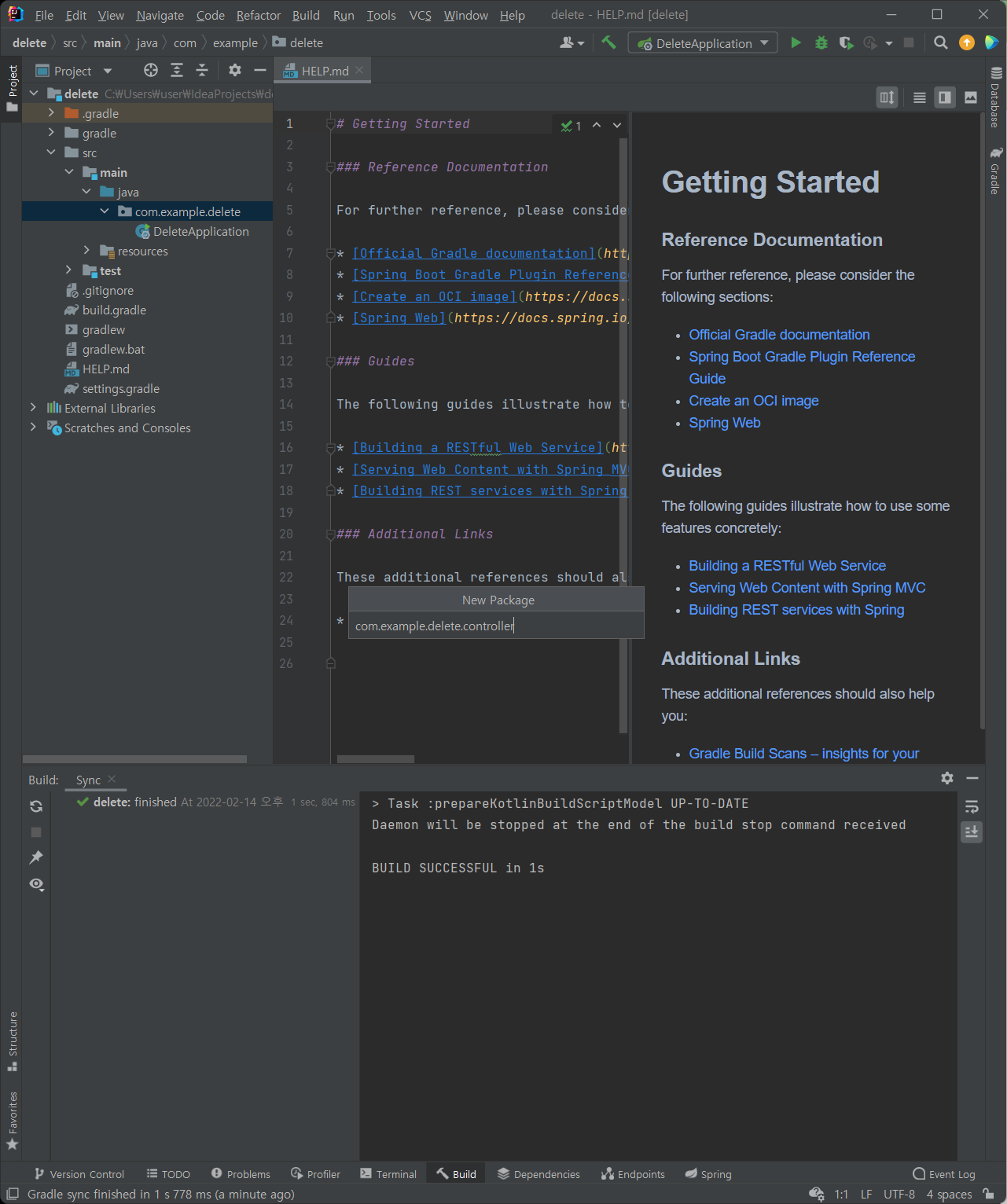 (2) src>main>java> com.example.delete 에 controller 패키지 추가