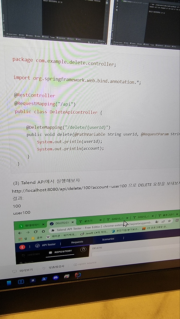 http://localhost:8080/api/delete/100?account=user100 으로 DELETE 요청을 보내보자