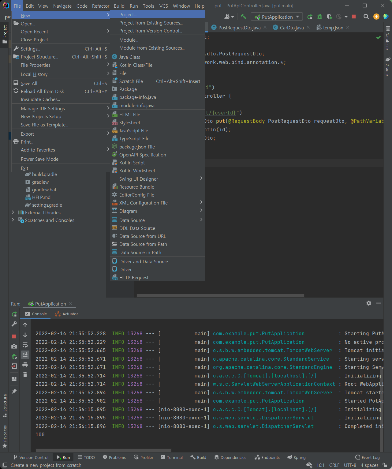 | 220213_스프링입문_스프링 부트 시작하기_PUT API_패스트캠퍼스 챌린지 21일차 (0) | 2022.02.13 |