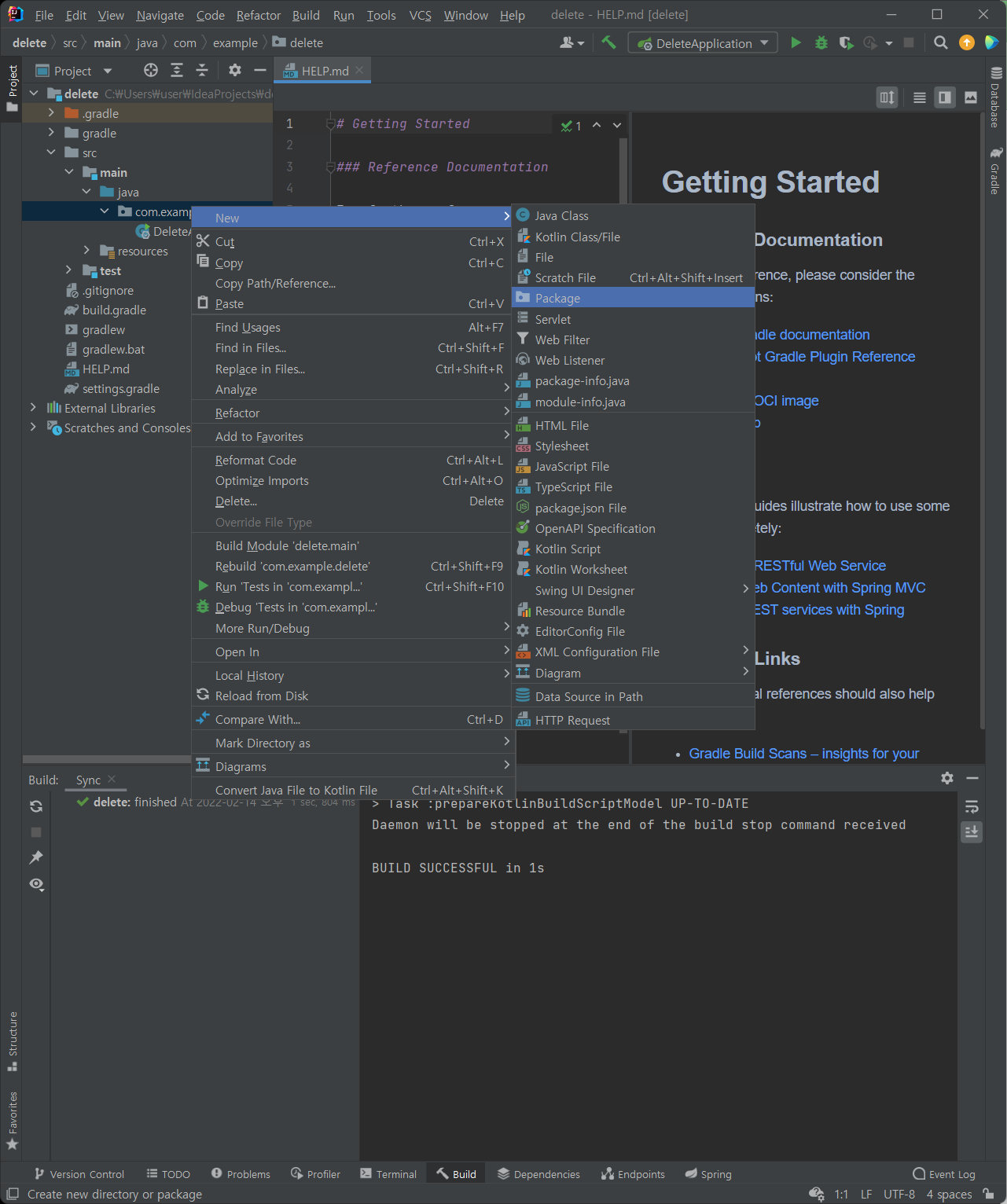 (2) src>main>java> com.example.delete 에 controller 패키지 추가
