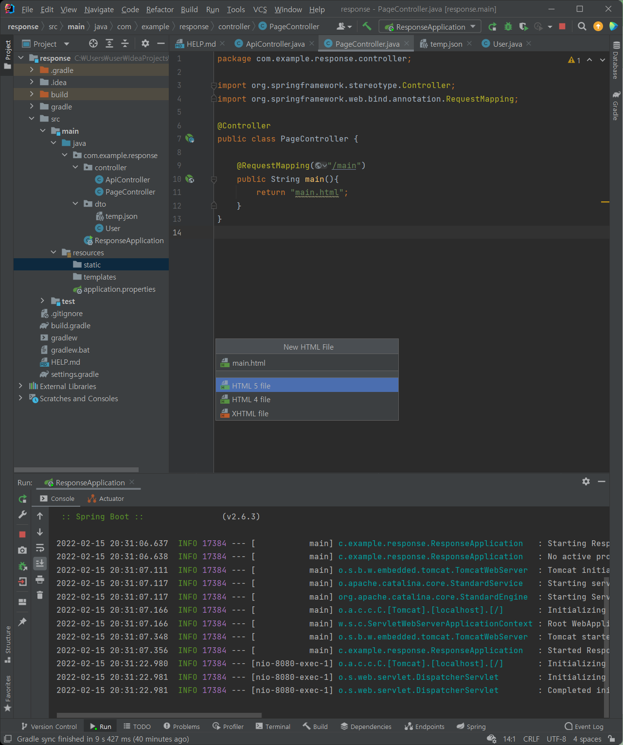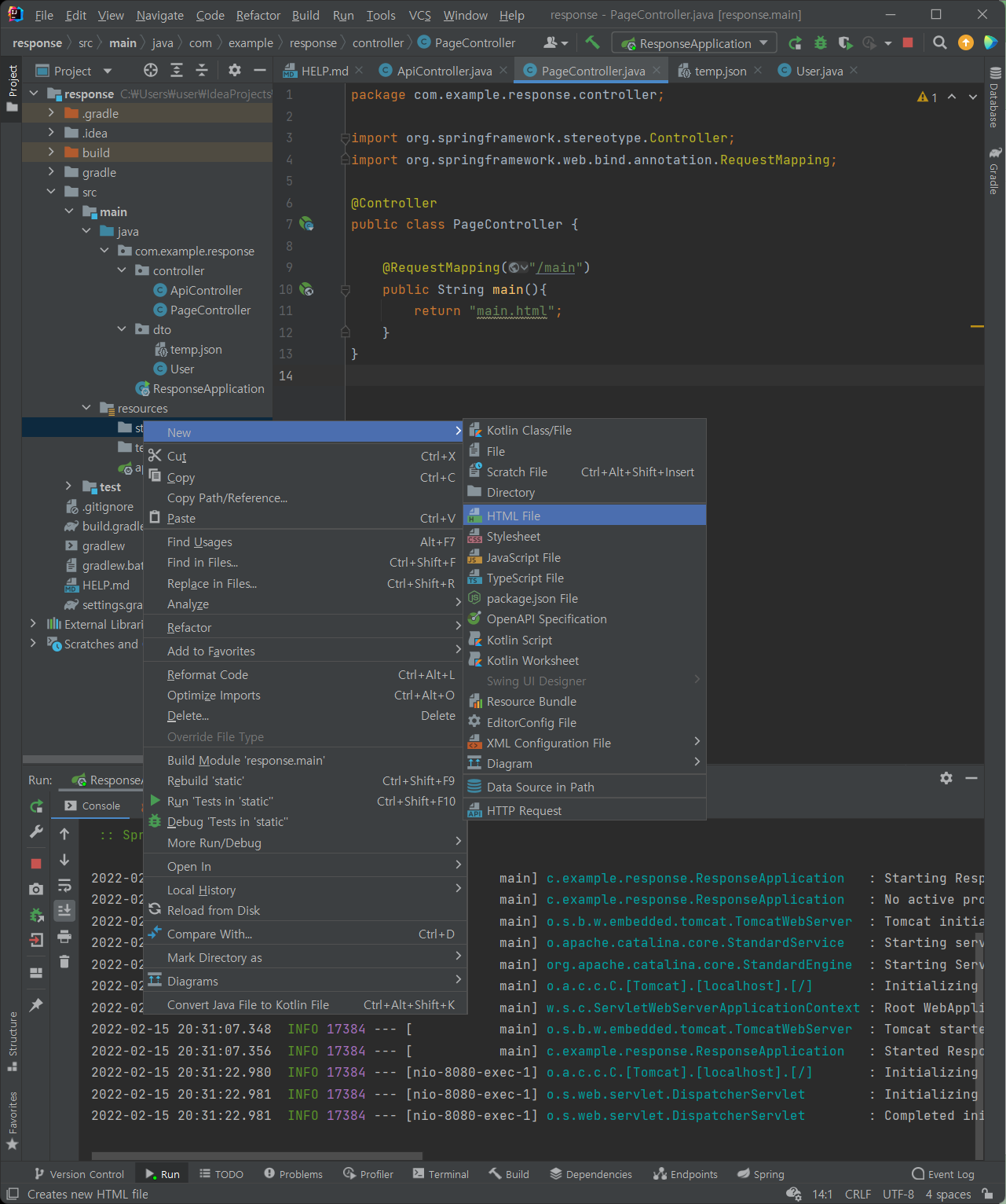 (10) resource 폴더 > static > 마우스 우측 클릭 > New > HTML file > main.html
