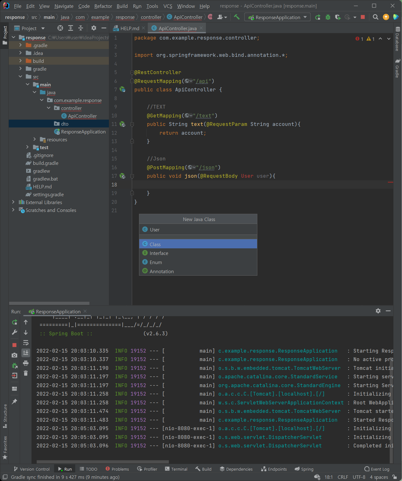 : Response를 내려줄 때 Http Status를 정해줄 것이기 때문에 다음과 같이 작성한다