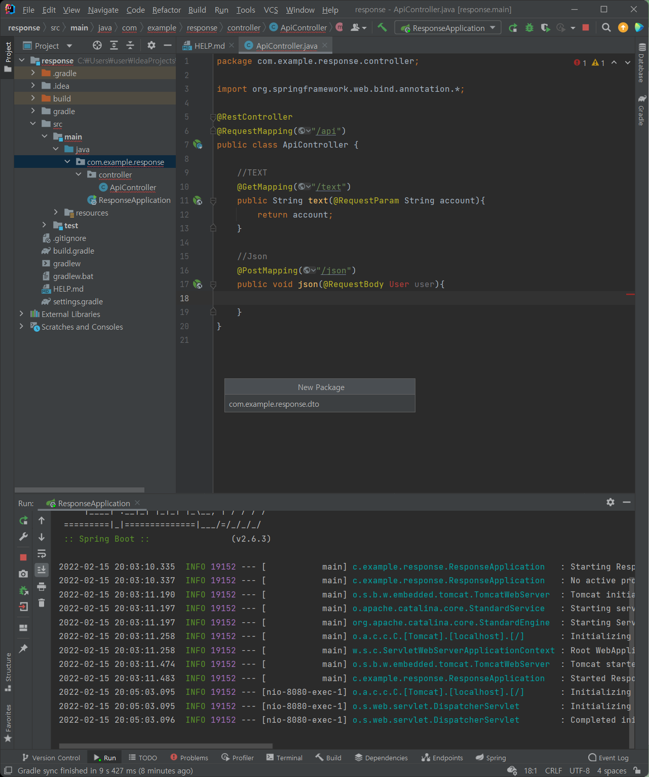 (2) controller 패키지를 추가해주고, ApiController 클래스를 추가해준다