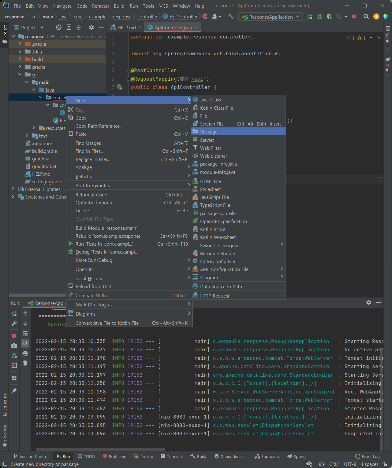 (2) controller 패키지를 추가해주고, ApiController 클래스를 추가해준다
