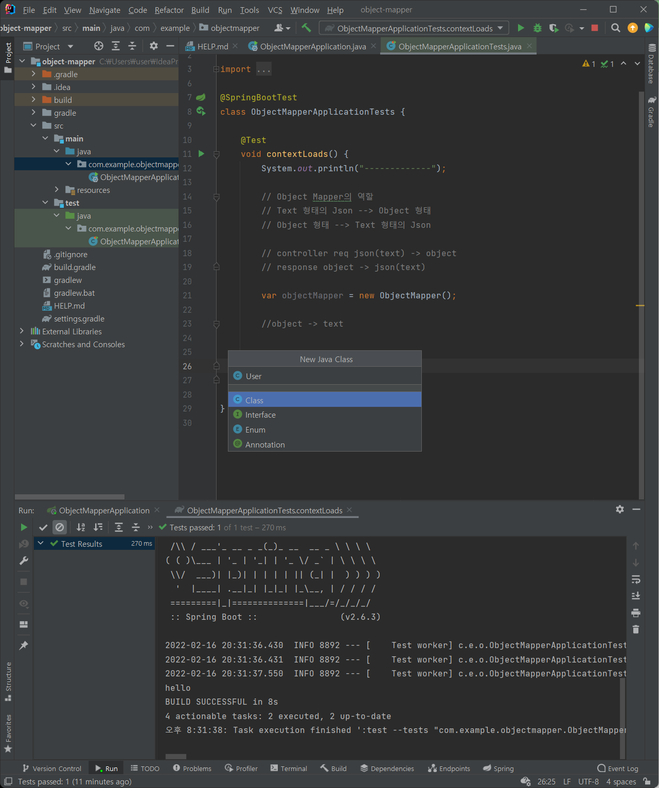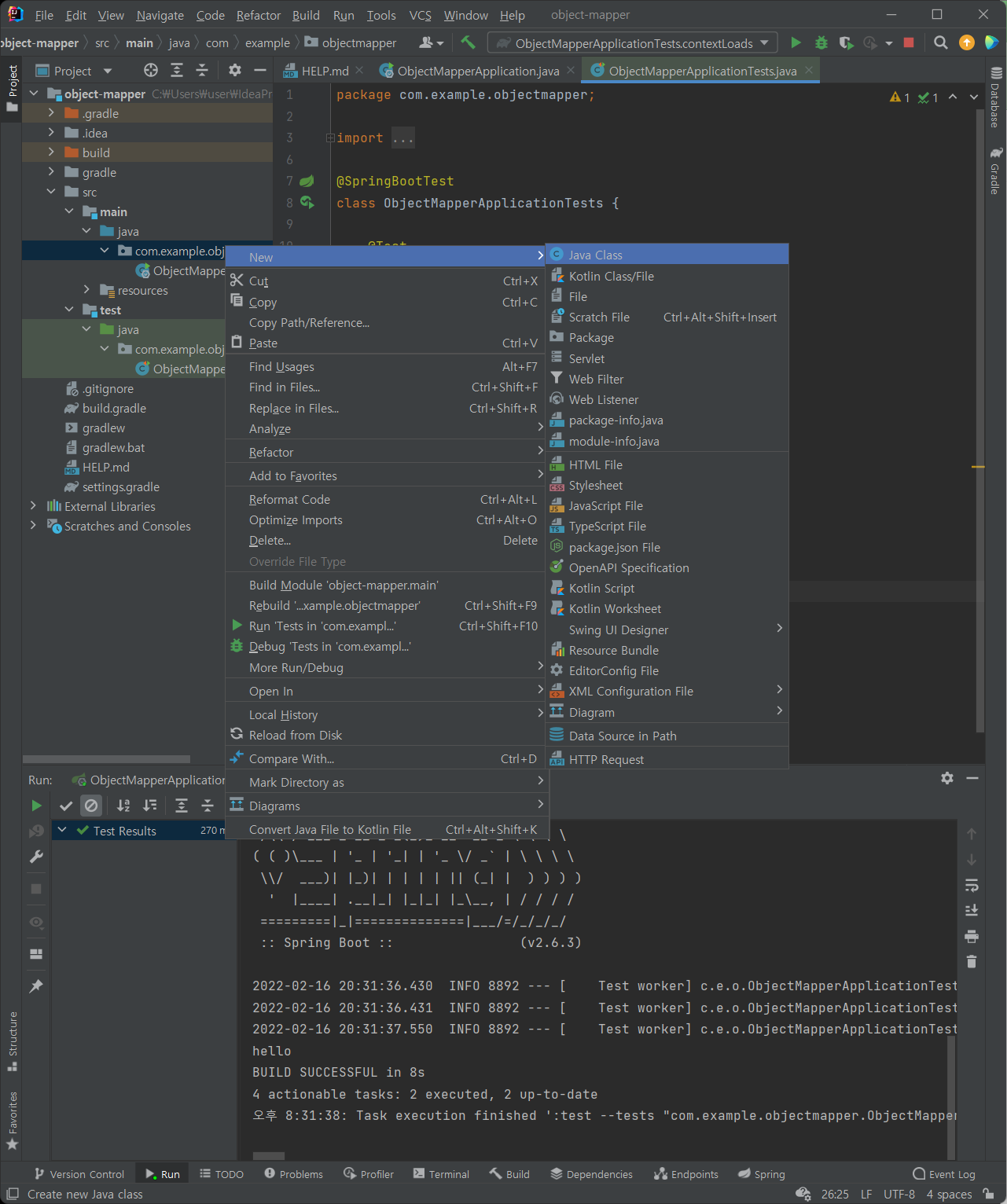 (5) ObjectMapperApplicationTests 를 작성합니다