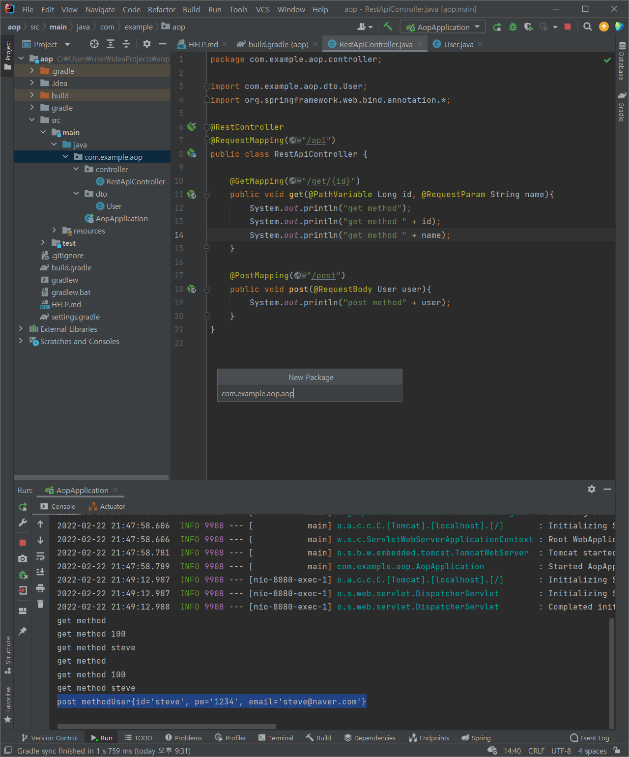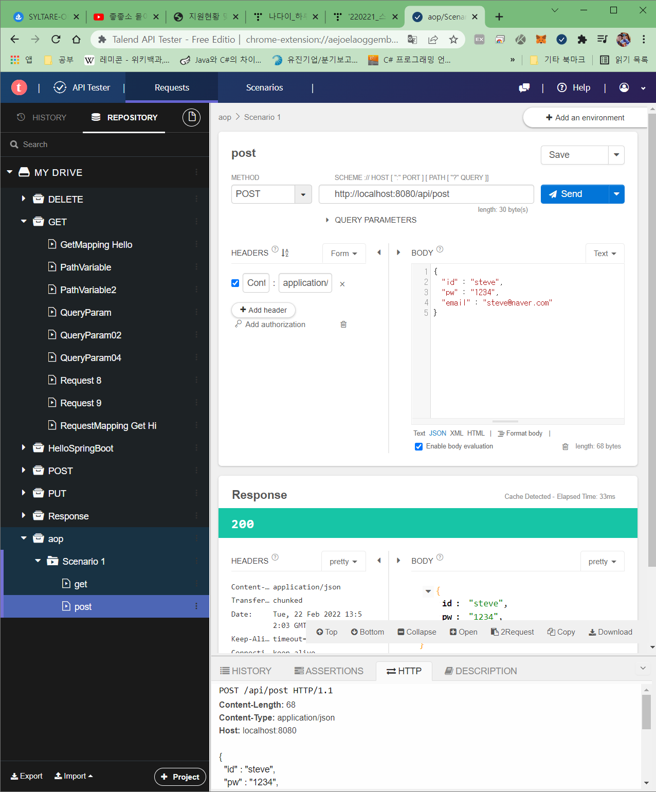 post methodUser{id='steve', pw='1234', email='steve@naver.com'}