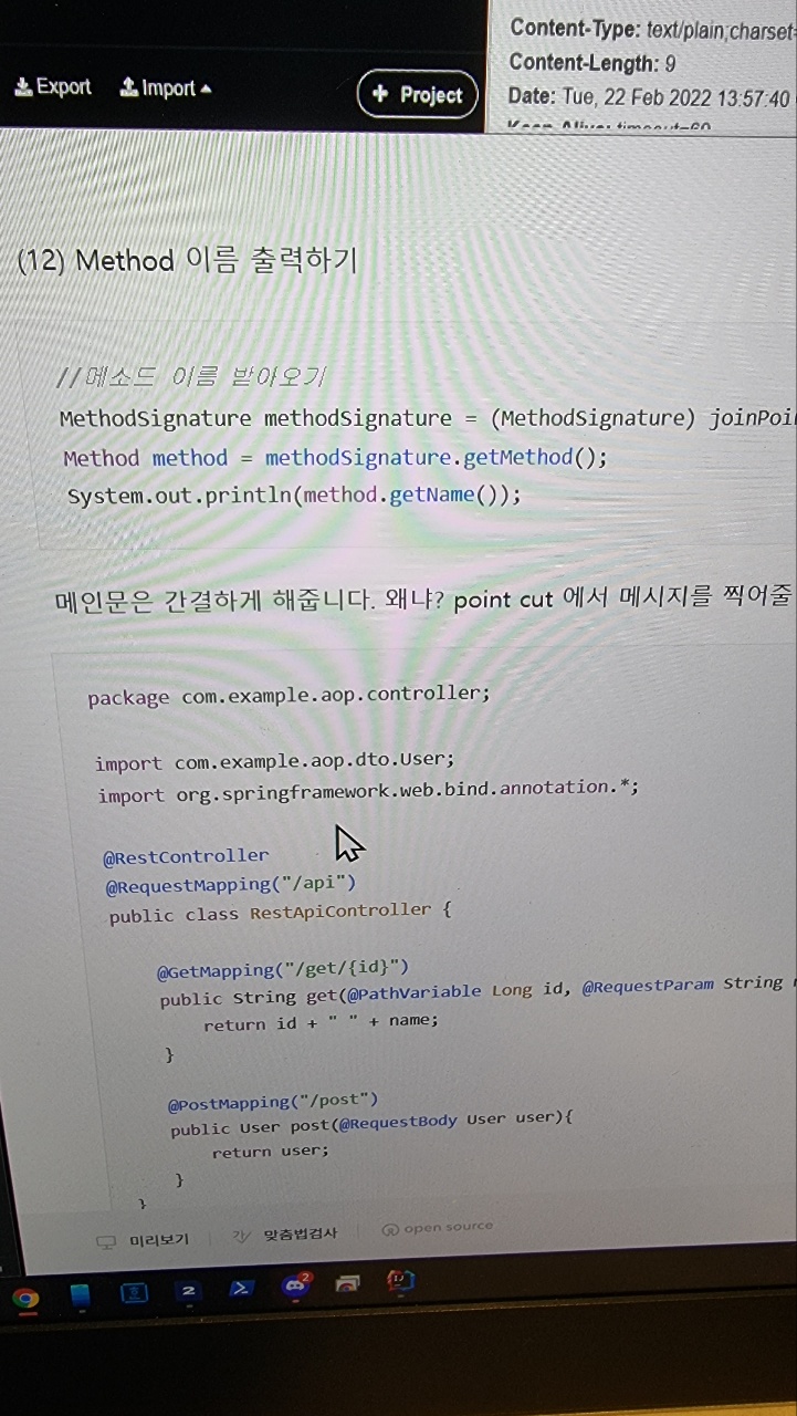 | 220222_스프링 입문_스프링을 조금 더 들여다보기_AOP 실무 사례 알아보기(2)_패스트캠퍼스 챌린지 30일차 (0) | 2022.02.23 |