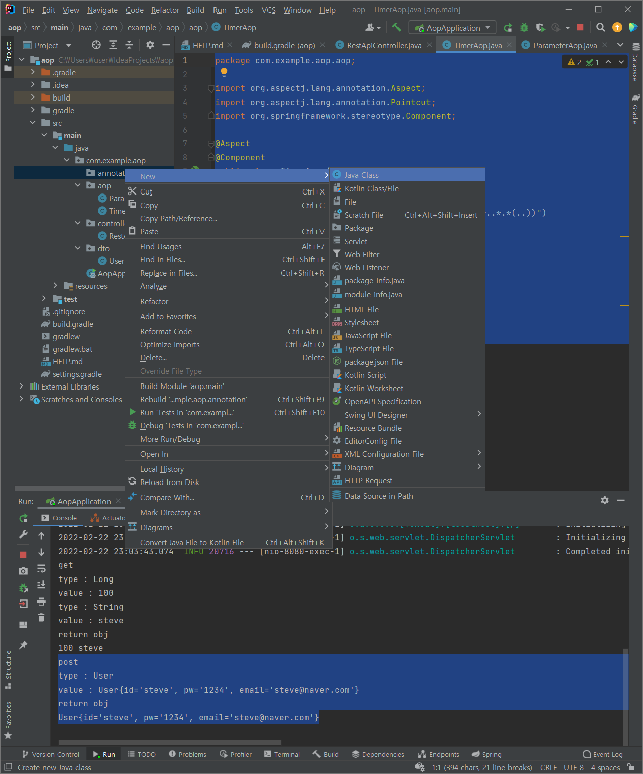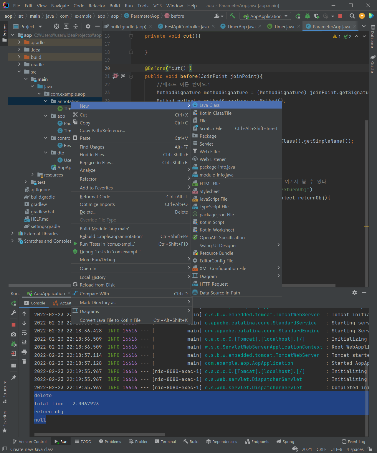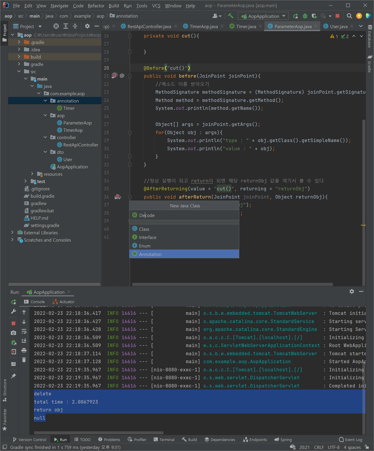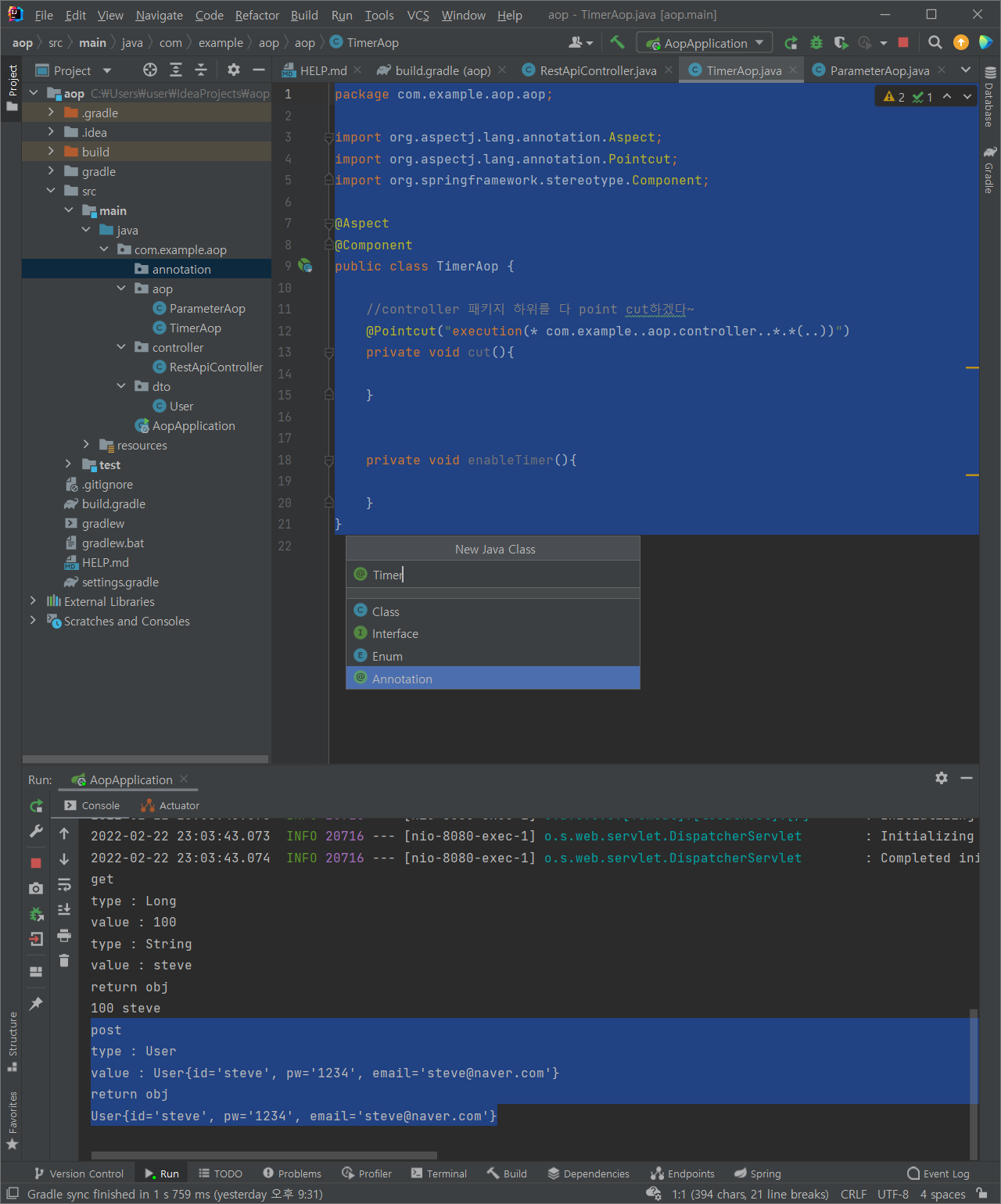 (1) aop 패키지에 TimerAop 클래스 추가