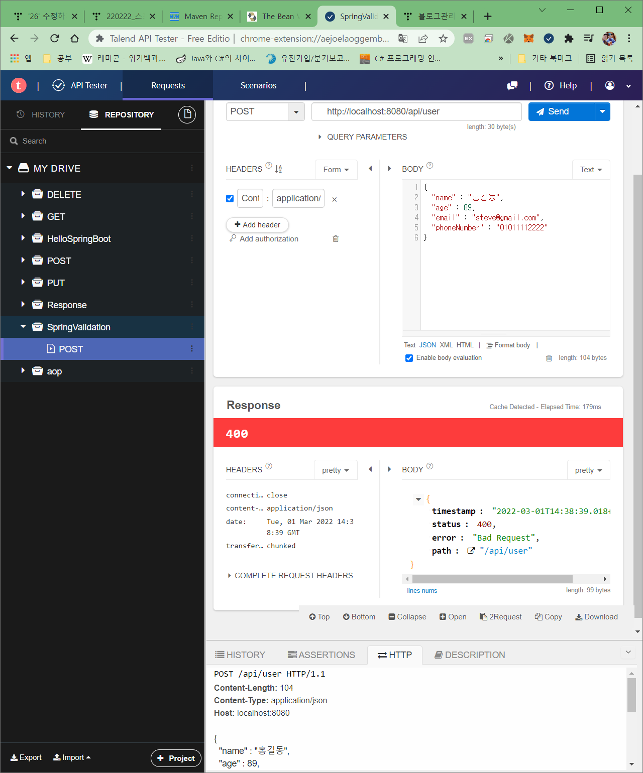 : ApiController 클래스 수정(user 메소드 파라미터 앞에 @Valid 어노테이션 추가)