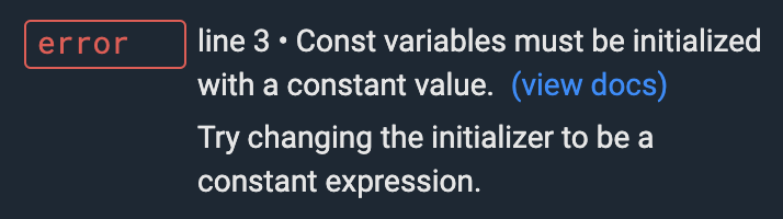 2. Dart의 const는 compile-time constant를 만든다.