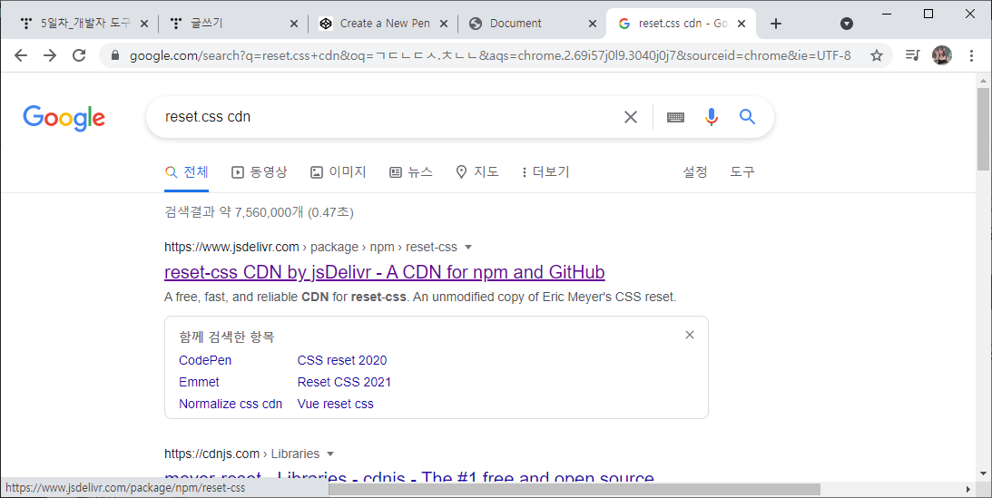 reset.css cdn 검색 : 브라우저의 스타일을 초기화하는 css