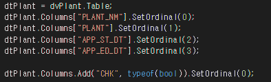 C#_DataTable 컬럼Columns 추가 Add, 위치변경 SetOrdinal_20210813