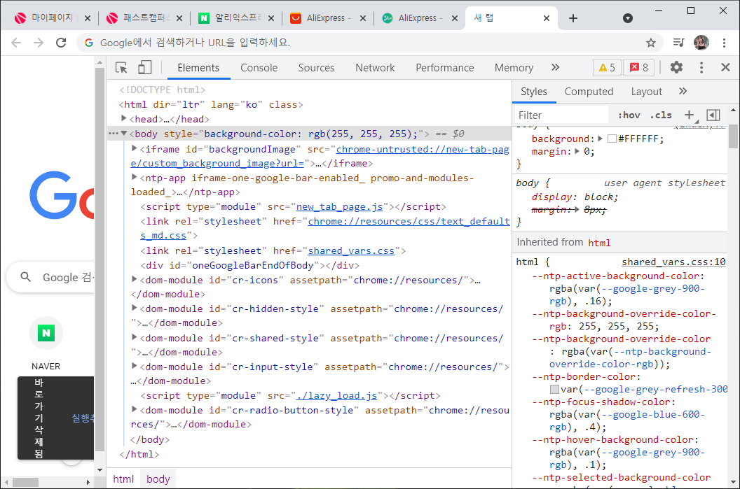 개발자 도구 사용하기 구글크롬 실행: F12 버튼 누르기 : html 구조와 css 구조를 분석할 수 있음 : javascript는 디테일한 분석까지는 쉽지 않음 : Elements에서 Styles 로 css가 적용된 내용들을 볼 수 있음 : Computed에서 실제로 적용된 목록으로도 내용을 볼 수 있음